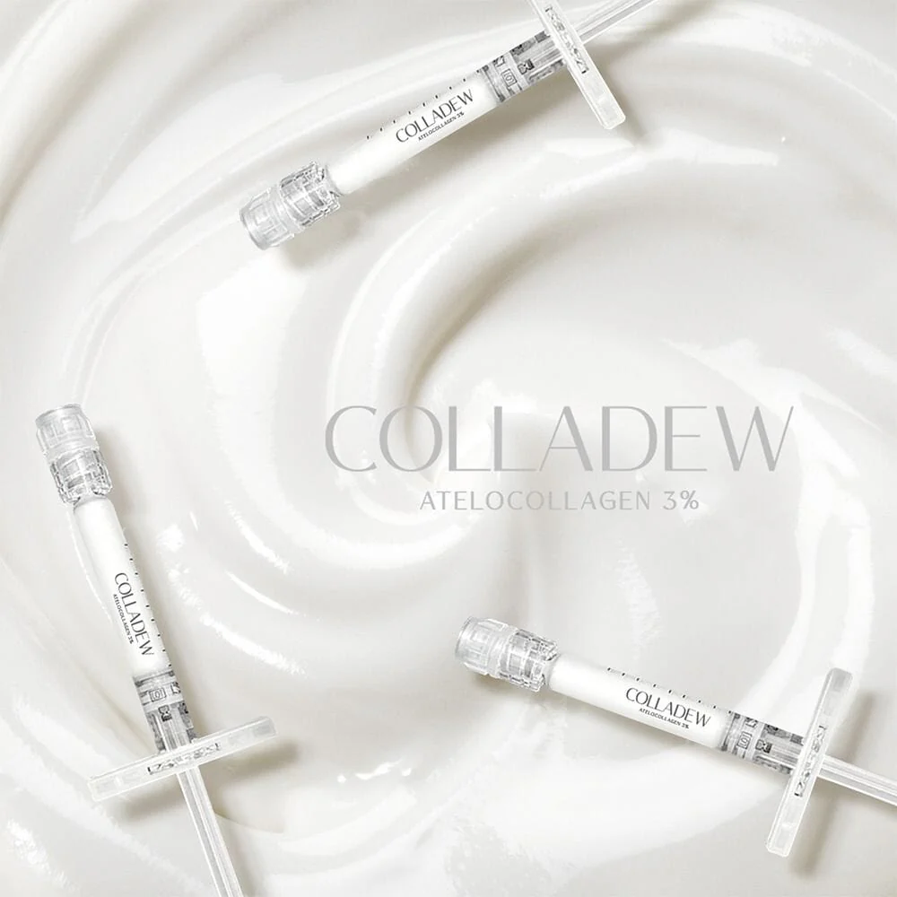 COLLADEW is a collagen filler approved by the KFDA (Korean Food and Drug Administration). It is made with atelocollagen, which is a type of collagen that has had the immune-rejecting telopeptide removed. This makes it very safe and well-tolerated by the body.